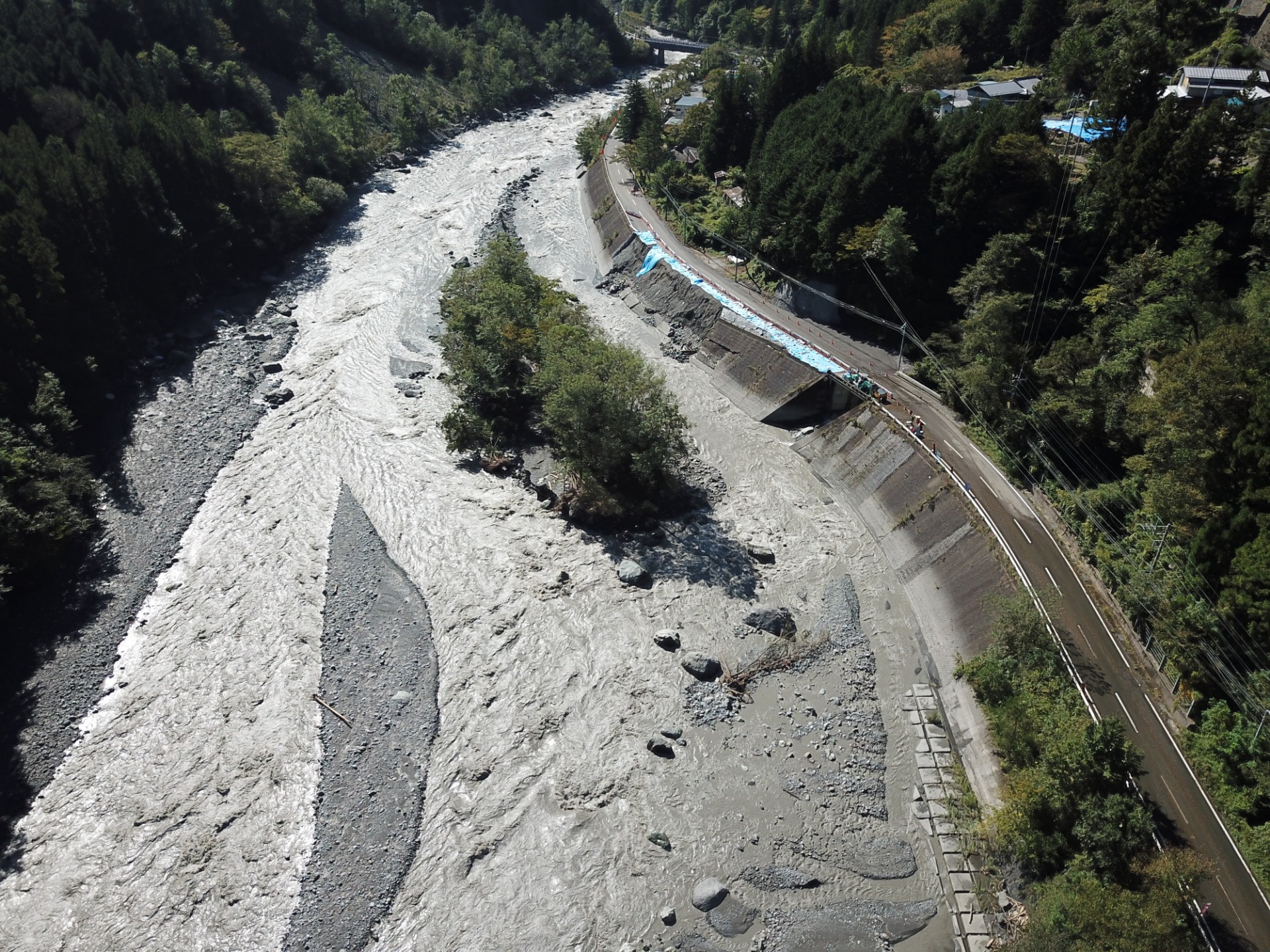 電柱の移設が完了した矢先、今度は台風24号の影響で仮締切が決壊、